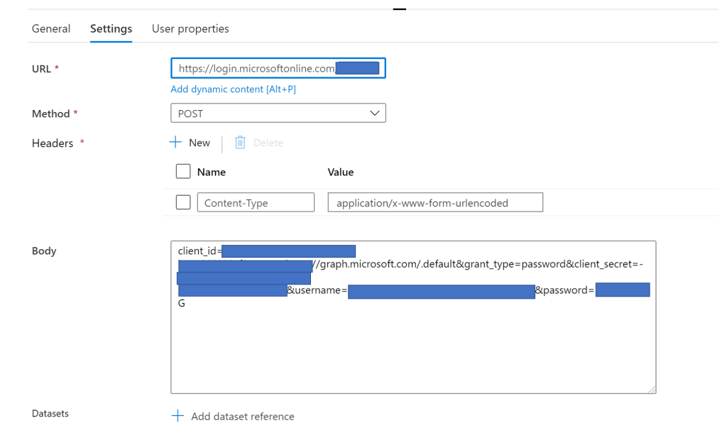 - Web Activity – This is used to connect to the authorization endpoint and get a bearer token