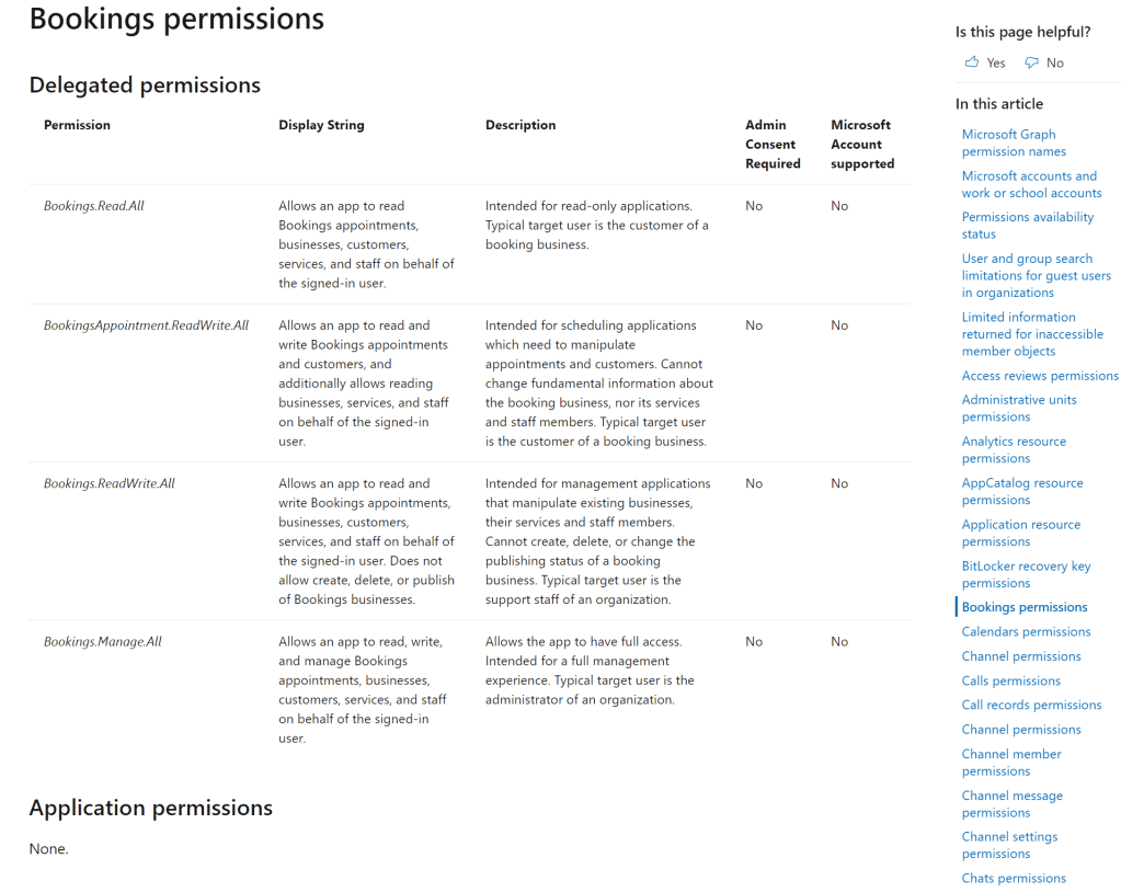 Every API in the Graph needs specific permissions in order to query it. For the Bookings API, you need the following permissions in order to query it –