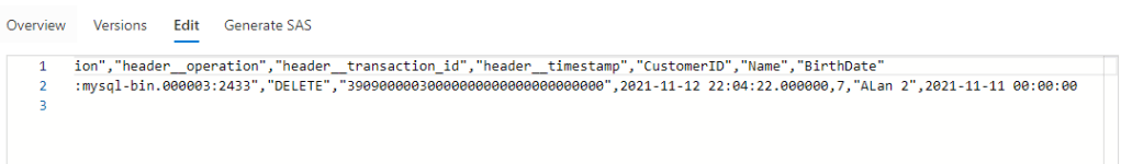 Each file contains changes created from the source system, with each row being a specific modification, such as INSERT, UPDATE and DELETE –